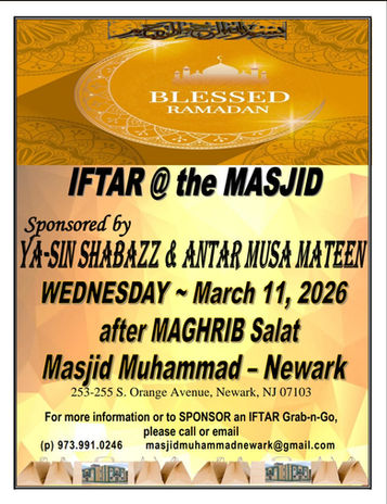 Every Friday at 1:15pm in-person and online at Facebook Masjid Muhammad-Newark).